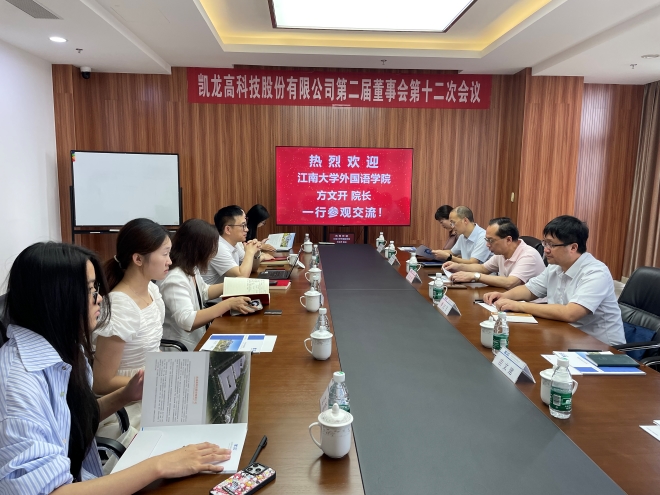 凯龙高科技股份有限公司副总经理、技术研究院院长刘德文,技术研究院副院长周颖,外贸业务部经理欧小娟参加座谈交流会。首先,3044永利集团官网一行参观了企业展厅。座谈会现场,刘德文介绍了公司的发展历程、主要产品、招聘情况等内容,他表示,企业一直在拓展海外业务,需要高素质语言人才,期待与3044永利集团官网在实习就业、人才培养等方面展开合作。方文开介绍了学院的师资力量、学科建设、人才培养等基本情况,他表示,学院人才培养离不开企业的支持,希望以本次访企拓岗为契机,双方携手开启共赢共发展的新局面。季王飞介绍了学院2025届毕业生就业情况,欧小娟介绍了公司海外业务发展情况。在交流环节,大家围绕“实习工作”、“招聘要求”、“人才培养”等方面积极发言。